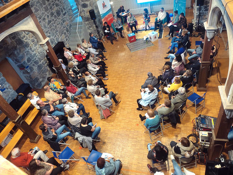 Pasaden maiatzaren 13an Zaintzak Erdigunera eguna ospatu genuen Hernanin. Goizean goizetik hasi ginen lanean, kalean askotariko zaintzaileen egoeraren gaineko informazioa zabalduz. Zaintzaileen profila orotarikoa izan arren, badaude komunean dituzten hainbat egoera: prekarietatea, lanaren gutxiespena, soldata baxuak, erlojuaren kontra aritzea, denbora falta…Eta horien gainean kontzientzia sortzeko batu ginen Plaza Berrin. Ondoren, mahai inguruan bildu ginen Hernaniko zaintza komunitarioaz aritzeko. Bertan, ahots ugari bildu genituen komunitate indartsuek duten garrantziaz aritzeko, elkarlana eta auzolana ezinbestekoak direla aipatzeko, eta, zalantzarik gabe, horrek gure osasunean (bai fisiko zein mentalean) eragin positiboa duela adierazteko. Osakidetza, gizarte zerbitzuak, Auzozaintza programa, Odol emaileen elkartea, Etxeberri auzo elkartea, Auzokide, zein bertako bizilagunak bildu ginen, eta bakardadeari aurre egiteko pilula ezinbestekoa elkar zaintza dela ondorioztatu genuen.